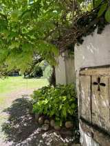 Le jardin, de 800 m² environ, est entièrement clos et arboré, à l'abri des regards et dispose d'un petit chalet en bois très utile pour ranger les outils et mobilier extérieur et d'un puits.