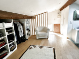 A l'étage, l'espace nuit des enfants avec trois belles chambres, salle de bains, toilettes et, dans les combles une belle suite parentale mansardée, avec sa salle d'eau privative et ses toilettes.